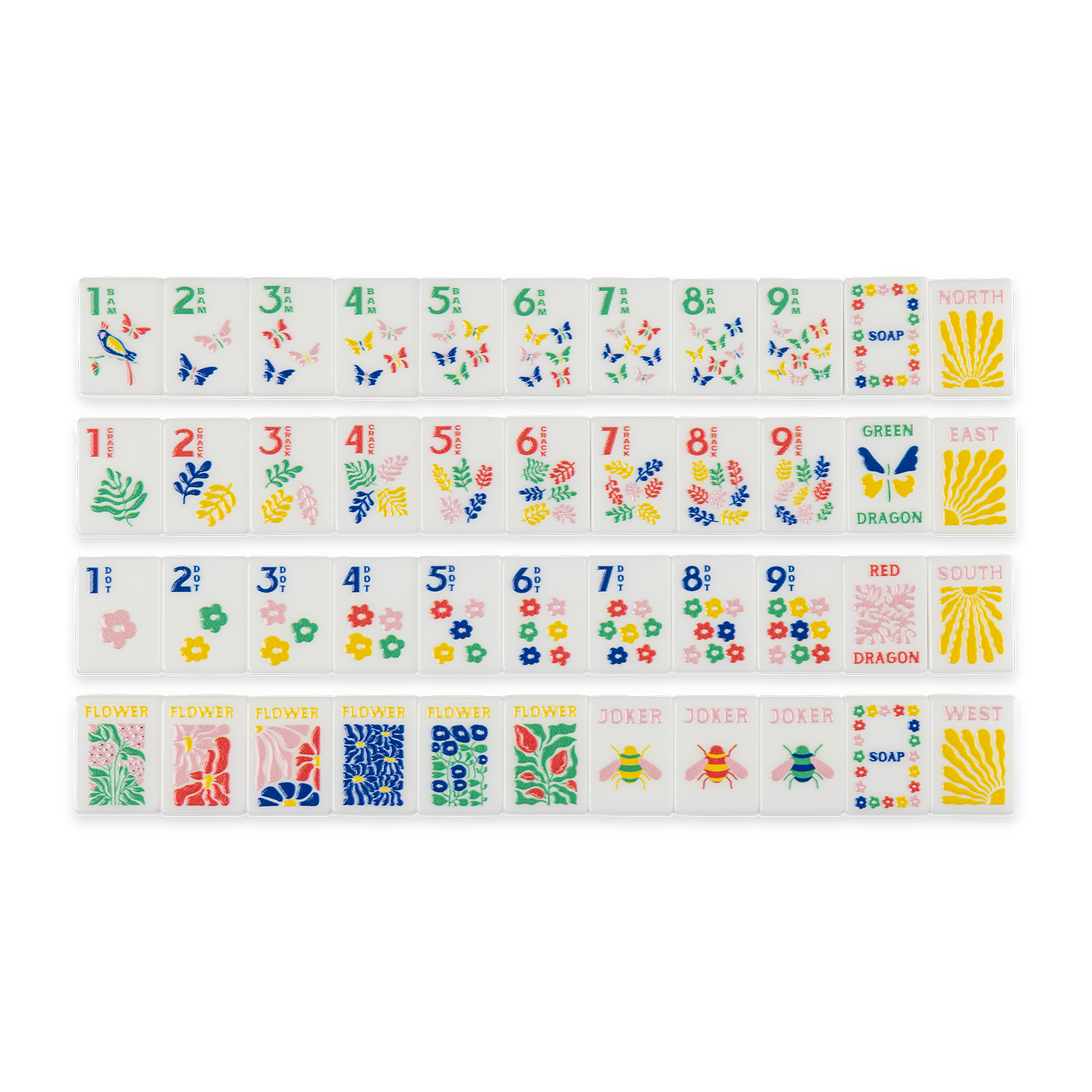 We are excited to offer a miniature version of our best selling stamped acrylic tiles in our beautiful Garden design! The Amahj Mini Travel Tile Set is perfect for any mahjong lover on the move. Our acrylic tiles are crafted from 100% acrylic, laser-cut, and stamped with our vibrant, signature design. For ease of learning and play, each tile in every Amahj set is clearly labeled.